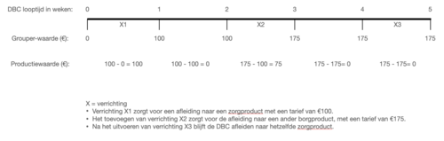 1. ValueCare berekent de productiewaarde door een DBC meerdere keren te grouperen, iedere keer met een extra week aan geregistreerde verrichtingen. Zo berekent ValueCare tot welk zorgproduct een DBC tot dan toe afleidt.
