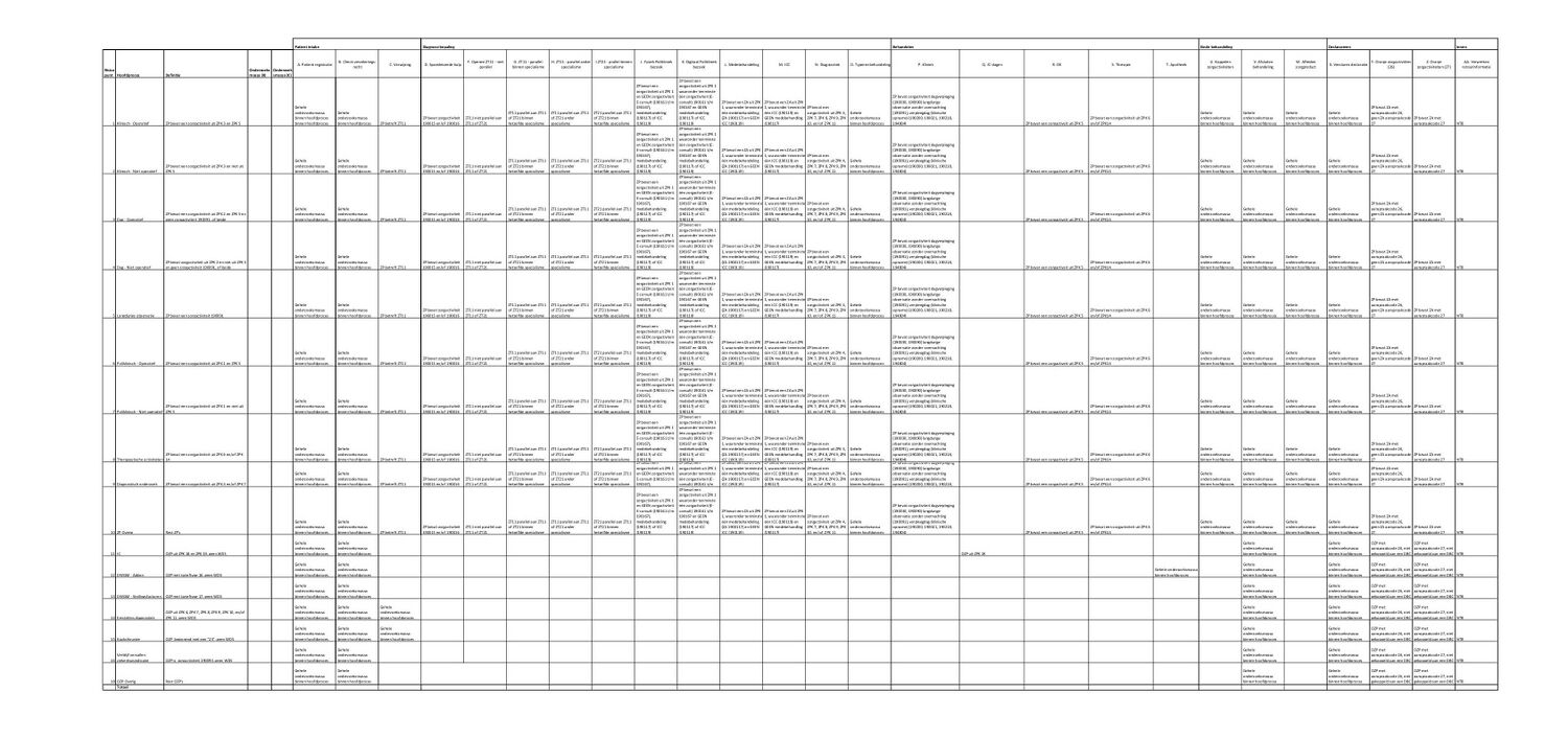 Verder is de horizontale as te lezen als de processen die een patiënt in het ziekenhuis kan raken. Zo komt bijvoorbeeld elke patiënt in de Klinisch Operatieve omzetstroom, in aanraking met het “Patiënt Registratie” proces. Niet elke patiënt komt echter binnen via een verwijzing, en zodoende wordt in de kolom “Verwijzing” gefilterd op ZT11.